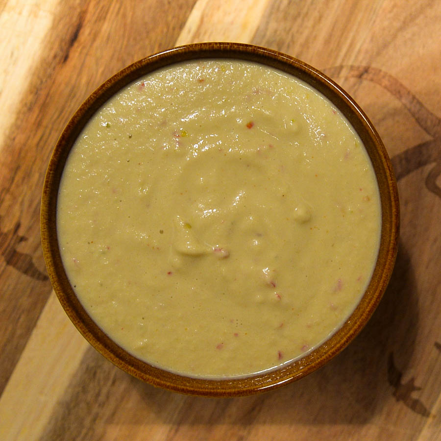 Zutaten Apfel 220g – grob würfeln Olivenöl 50ml Agavendicksaft 2EL Knoblauchzehe 1/2 bis 1x Kokos Aminos Würzsauce (Soja Alternative) 1EL Mandelmus 30ml Cayennepfeffer Prise Zitronensaft 1TL Zubereitung Alle Zutaten miteinander fein pürieren