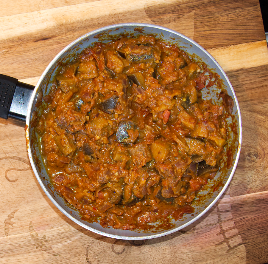 Zutaten Aubergine 2x – würfeln Rote Zwiebel 3x – würfeln Tomaten 4x – schälen & würfeln Ingwer 2TL Tomatenmark 1EL Dattelmus 1-2EL Garam Masala 2TL Kurkuma Pulver 1TL Kreuzkümmelsamen 2TL – mahlen Chiliflocken 1/2TL Pfeffer 1/2TL Kokosmilch 300ml Himalayasalz Olivenöl Zubereitung Aubergine & Zwiebel in Olivenöl leicht braun anbraten. Tomaten dazu geben und solange mit anbraten, bis die hälfte der Tomaten sich aufgelöst haben. Tomatenmark, Ingwer, Garam Masala, Kurkuma Pulver, Kreuszkümmel, Chiliflocken & Pfeffer dazu geben und kurz mit anbraten bzw. bis die Gewürze anfangen zu duften. ...
