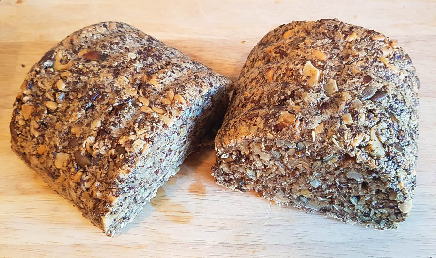 Zutaten Sonnenblumenkerne 50g Kürbiskerne 50g Deine liebsten Nüsse. Ich verwende Walnüsse & Paranüsse 100g – zerkleinern Leinsamen (geschrotet) 100g – schroten Chia-Samen 4EL Flohsamenschalen 2EL Haferflocken (glutenfrei) 200g Warmes Wasser 400ml Himalayasalz 1,5TL Kokosöl Zubereitung Alle Zutaten miteinander vermischen. Backofen vorheizen. Backform mit Kokosöl einfetten, die Masse hinein geben und bei 200°C für ca. 60 Min. backen.