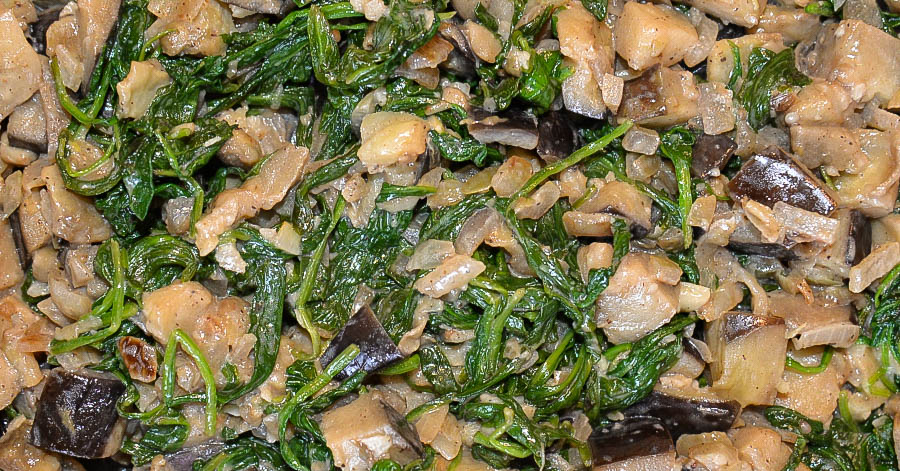 Spinatblätter & Kokosmilch dazu geben und ein paar min köcheln.